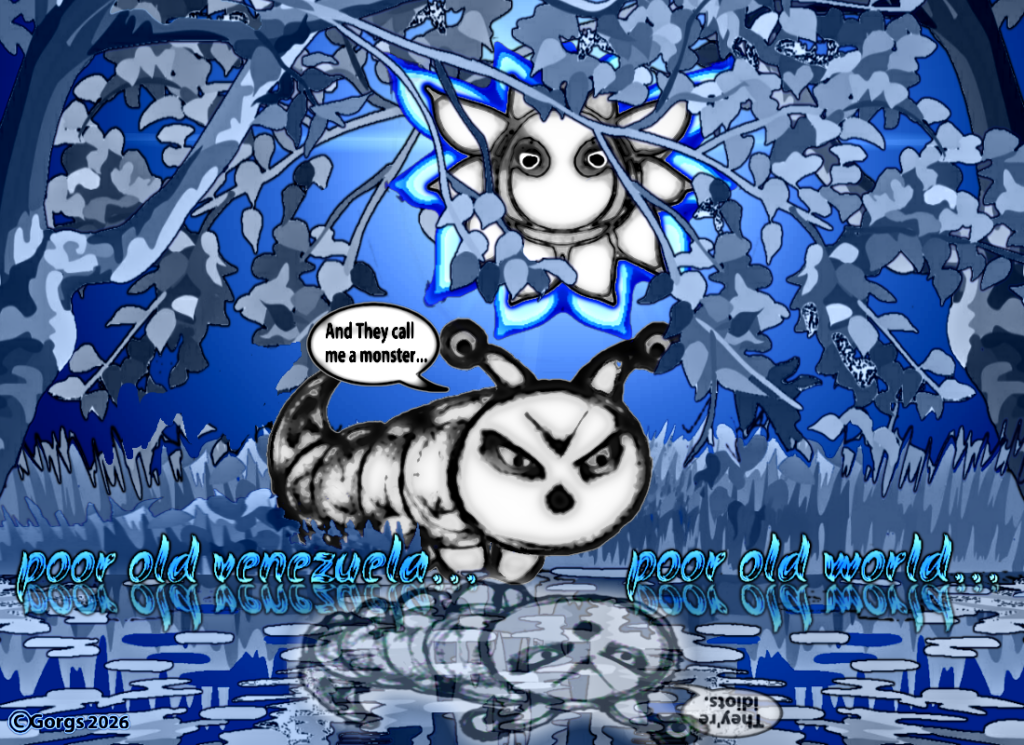 Space Invaders. I rest my case. 2026 will be anything but happy. Ask the Venezuelans if you have any doubts. Or the poor Greenlanders. Or Mexico, or Colombia or… Andorra? Who can tell what’s on the mentally retarded mind of this ageing infant? The only bright spark I can think of in the midsts of this latest repulsive Grand Guignol is (and that’s only pure schadenfreude, which is not nice…) is the massive snub from said baby-psycho to that half-wit Nobel Peace Prize recipient who, obviously not content with this unrestricted public humiliation is now, in a prodigious display of masochistic cocksuckery, offering to share said chaffy piece of paper with him. Ah, well…